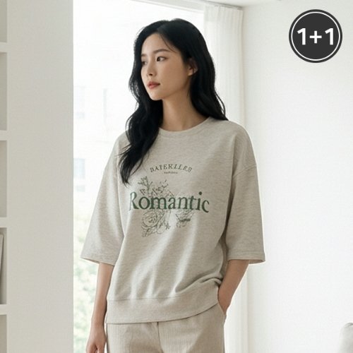 [홈앤단독-유니제이] (1+1)로맨틱 오버핏 7부 맨투맨