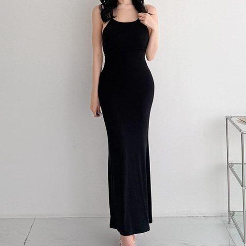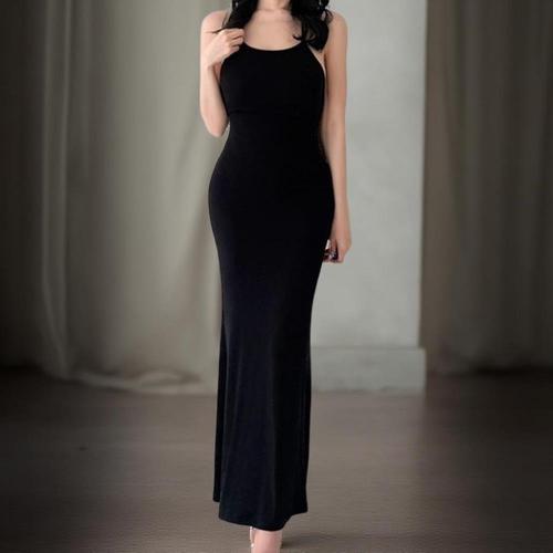 [신상오픈런]여성 슬림핏 백리스 머메이드 롱 나시 드레스