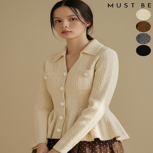 [머스트비]여성 울혼방 플레어 카라 니트 가디건