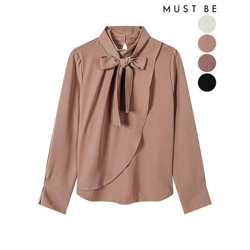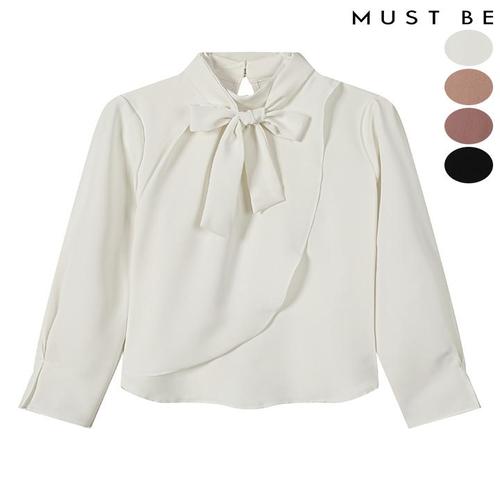 [머스트비]여성 모크넥 리본타이 언발 블라우스