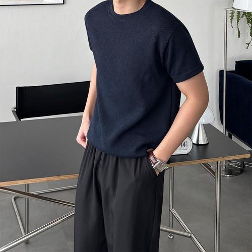 [패션큐브][당일출고/1+1할인] 여름 머슬핏 라운드넥 반팔 니트 6color 기능성 헬스 머슬티