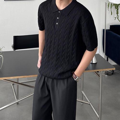 [패션큐브]남자 케이블 반팔 카라 여름 니트 5color 머슬핏 버튼 카라티