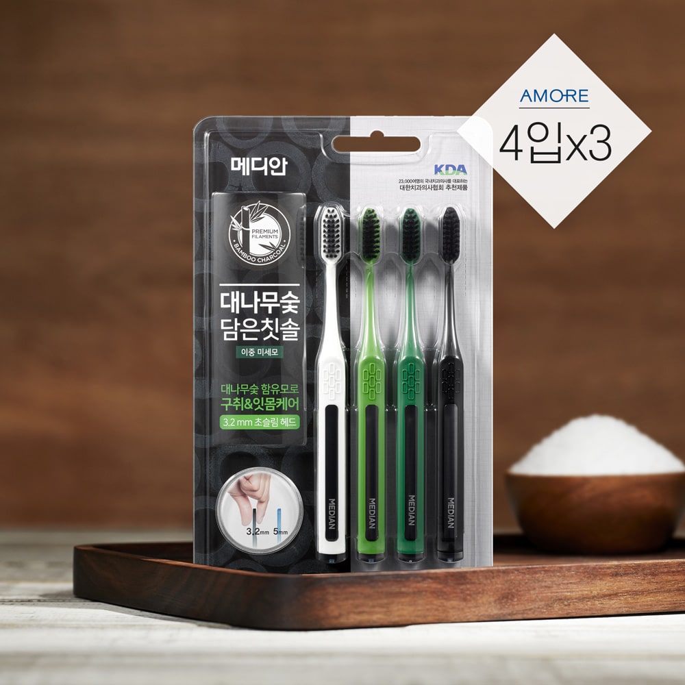 메디안 대나무숯 담은 미세모 칫솔 4입* 3 (총 12입)