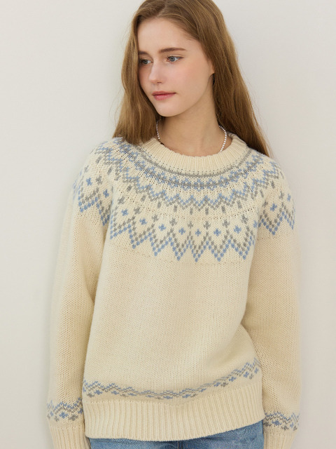 [논로컬] 노르딕 자카드 메리노 울 니트 - 아이보리