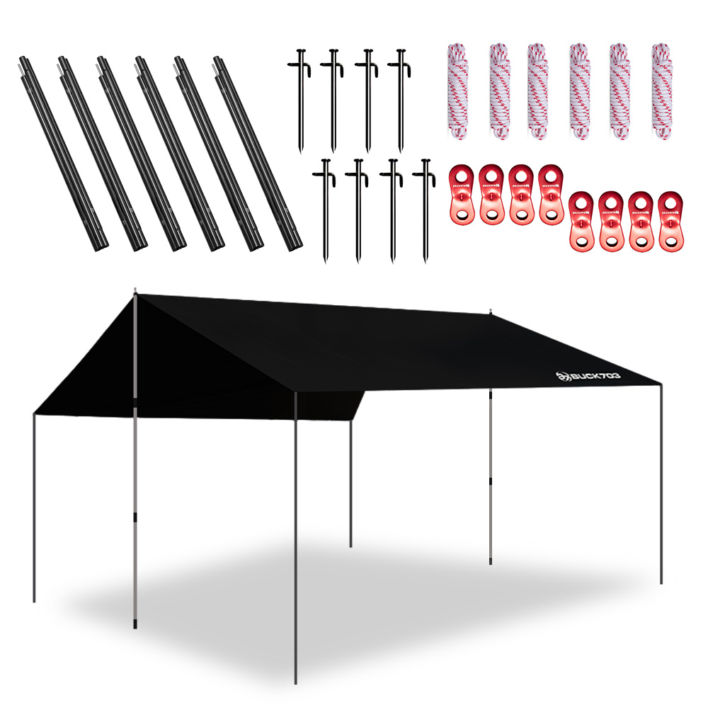 BUCK703 [특대] SALE 블랙코팅 암막타프 풀세트 타프 렉타타프 타프폴대 텐트 그늘막 캠핑매트