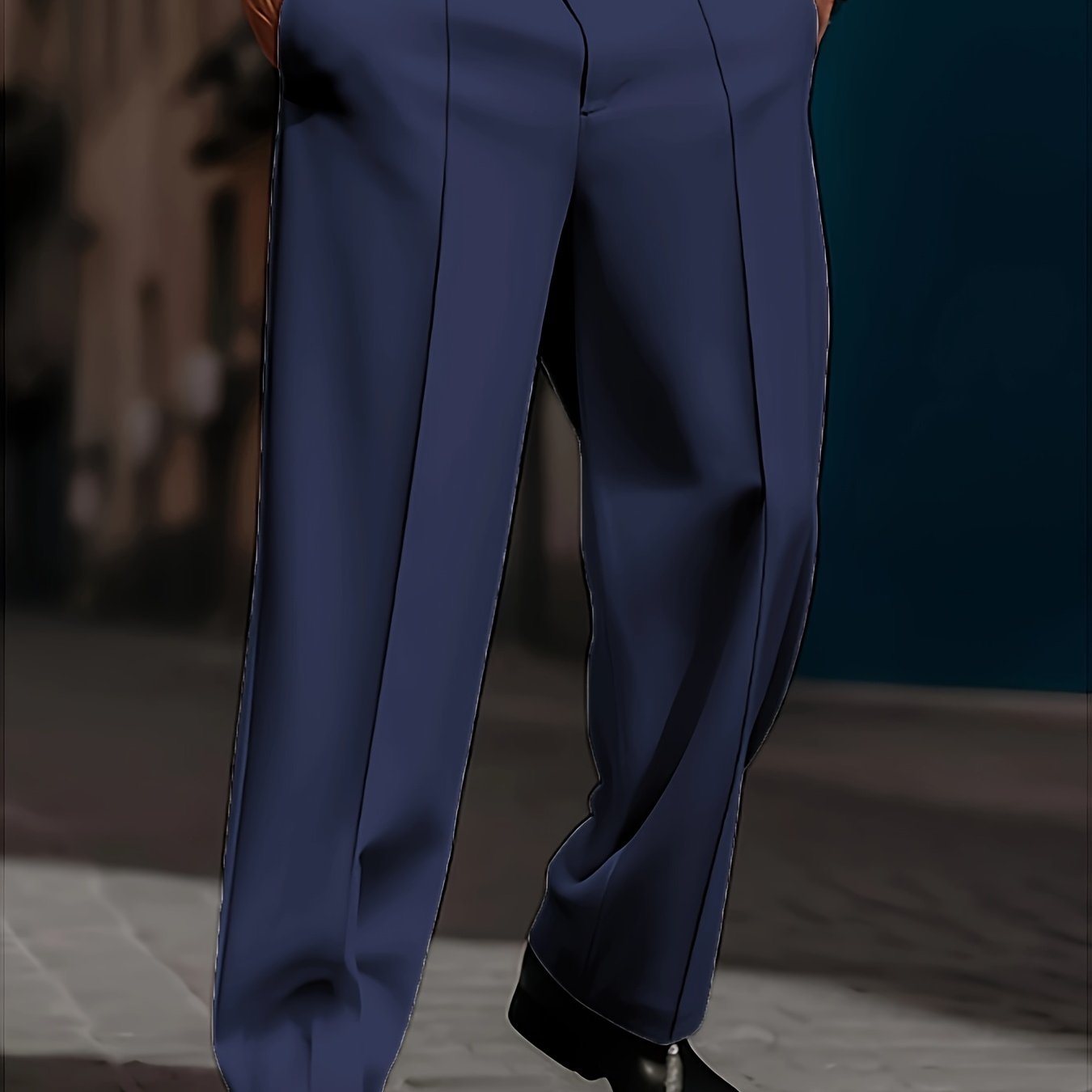TEMU 할로윈, 추수감사절, 크리스마스, 새해, 파티, 남성용 블루 단색 프린트 캐주얼 패션 바지, 야외 루즈핏 팬츠