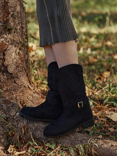 [메티에] me9492 레이어링 버클 스트랩 포인트 라운드토 폴딩롱부츠