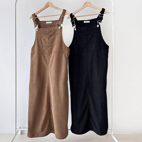 여성 슬릿 코듀로이 서스펜더 오버사이즈
