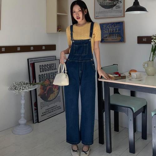 여자 키치무드 오버롤 진 H라인 서스펜더 팬츠