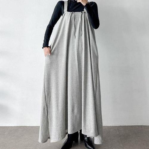여자 스트링 빅사이즈 플레어 멜빵 포켓 롱원피스