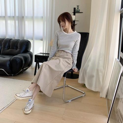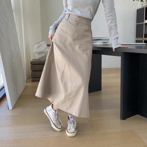 [옷자락]여성 클래식 탄탄 면 절개 A라인 롱 스커트