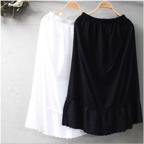 자수꽃 면레이스 롱스커트 여성레이어드이너속치마