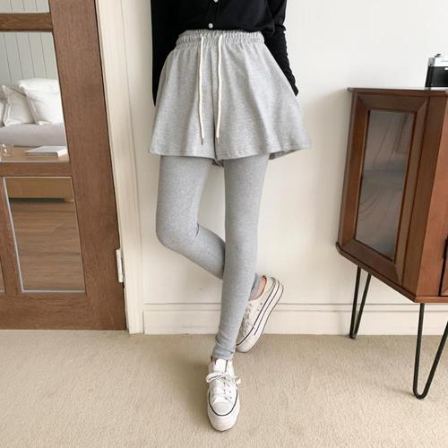 [옷자락] 여성 스포티 면혼방 스판 반바지 레이어드 레깅스