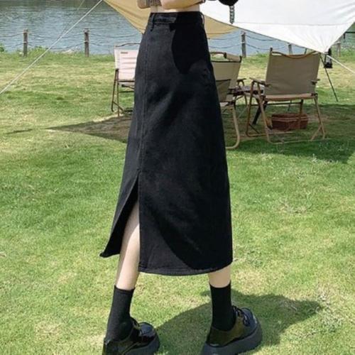 [옷자락]여성 캐주얼 면혼방 뒷슬릿 롱 블랙스커트