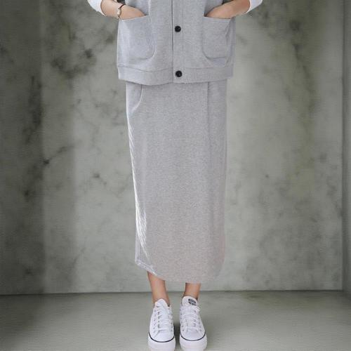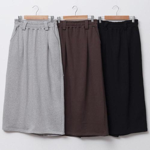 여자 슬릿 롱 면혼방 일자 고무줄 스커트