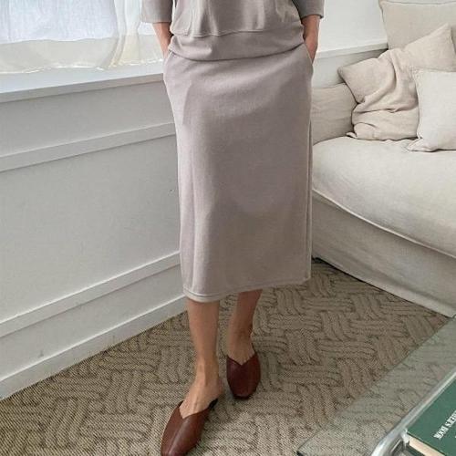 |KMK14C8|여성 H라인 절개 면혼합 스판 뒷밴드 롱치마