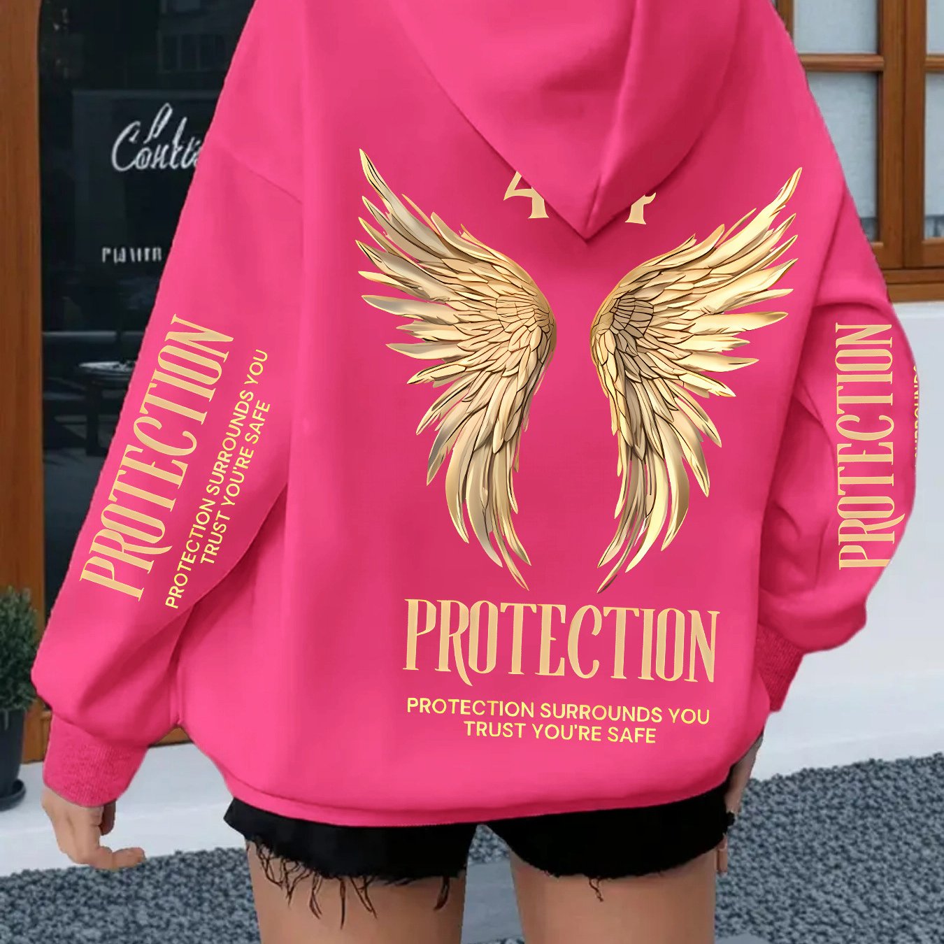트렌디한 창의적인 후드 티셔츠 윙 패턴 세련된 디자인 패션 캐주얼 긴팔 탑 다용도 여성 가을 의류