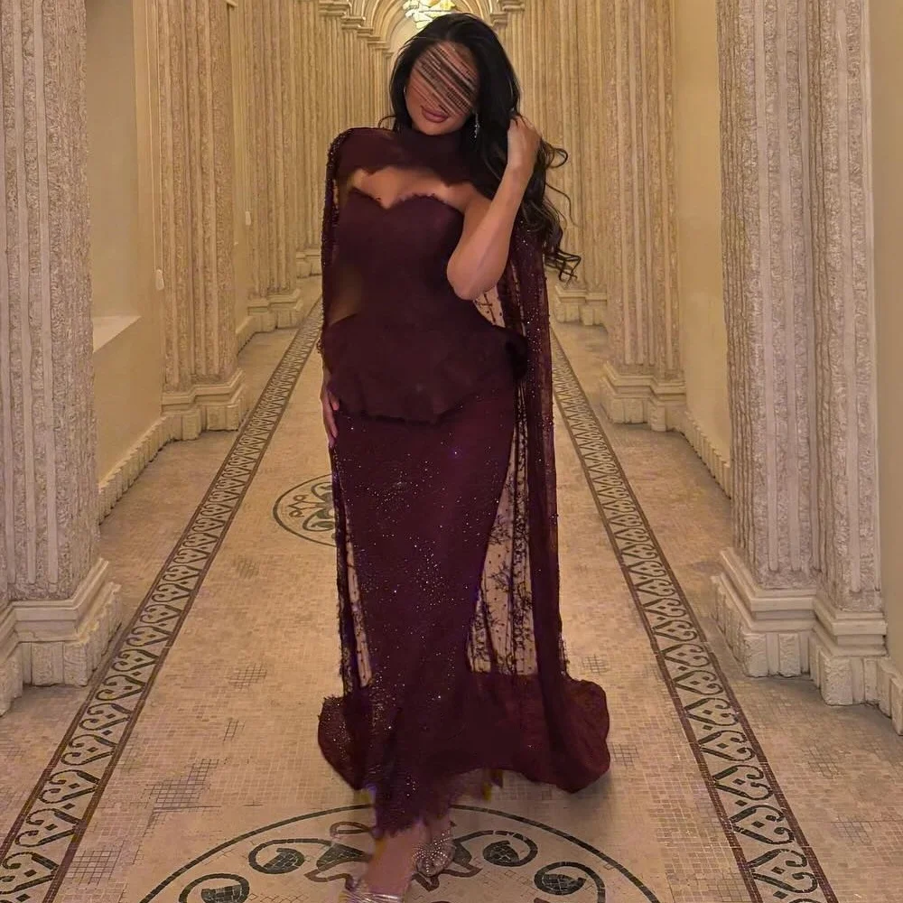 맞춤형 고품질 매칭 구슬 레이스 열 Strapless 발목 길이 드레스 맞춤형 행사 드레스 크기 사용 가능