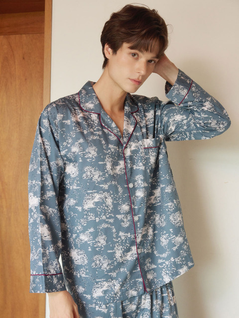 [루나루즈 스튜디오] 남성 샬롯 모달코튼 긴소매 카라넥 투피스 잠옷