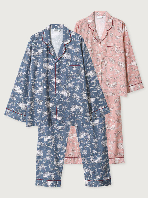 [루나루즈 스튜디오] 커플 로즈듀오 모달코튼 긴소매 카라넥 투피스 잠옷