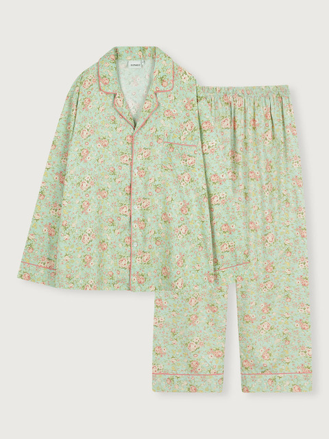 [루나루즈 스튜디오] 여성 로즈듀오 모달코튼 긴소매 카라넥 투피스 잠옷
