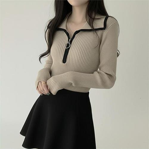 [라일리의류] Rly 감성 모던 빅카라 포인트 반집업 니트긴팔