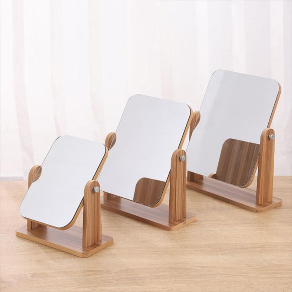 원목 우드 나무 360도 회전 탁상 화장 거울 3size