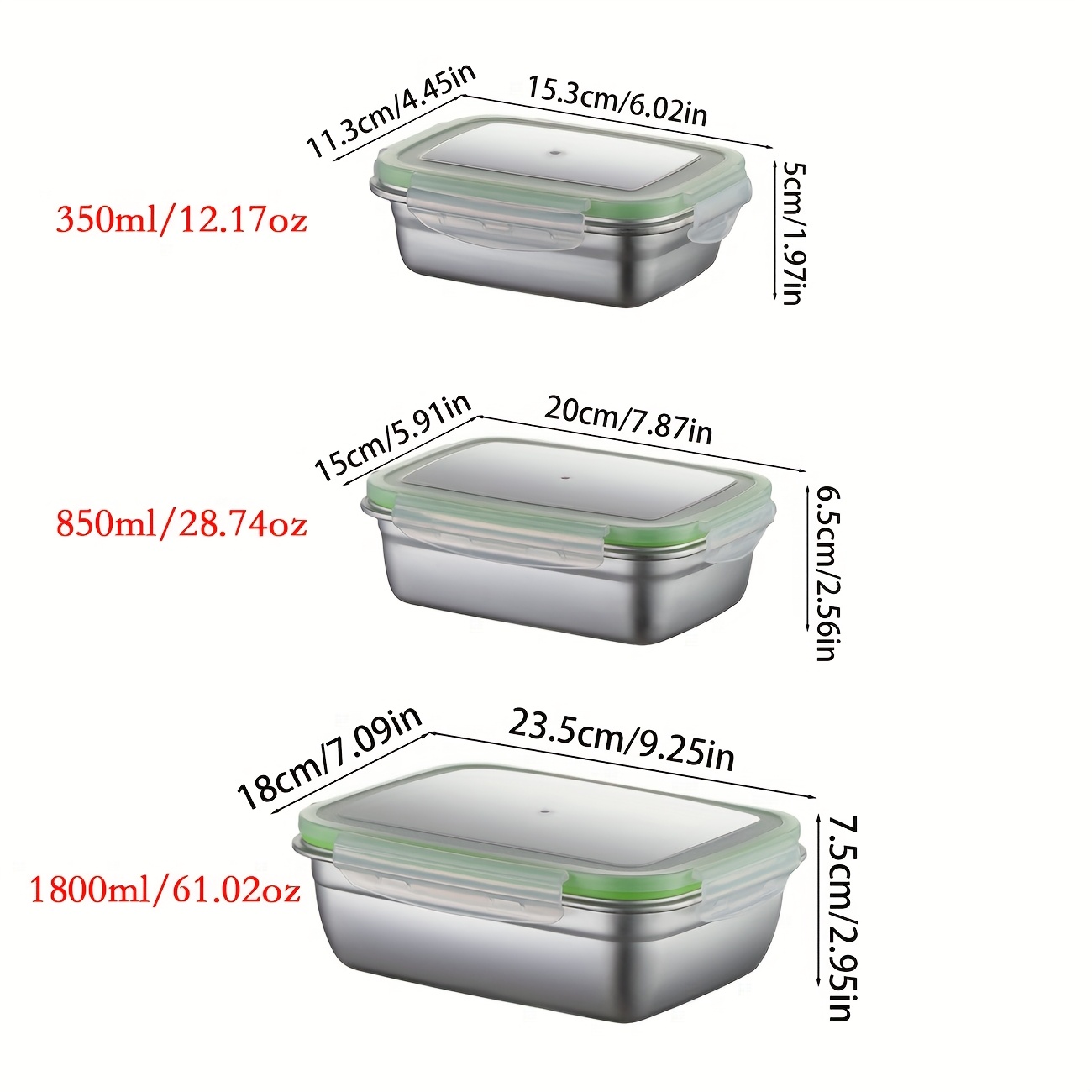 TEMU 304 스테인레스 스틸 식품 보관용기 세트, 실리콘 투명 뚜껑이 있는 스테인레스 스틸 신선도 상자, 쌓을 수 있음 - 가정 주방, 학교, 야외 피크닉, 여행 도시락, 학교로 돌아가기에 적합