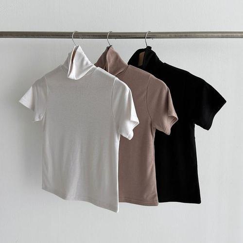 실크모달 소프트 하프넥 반목폴라티셔츠 이너기본티 모달실켓슬림티 미드레이어드