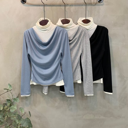 씨샵인더룸 / 무로 배색 레이어드 드레이프 셔링 폴라 긴팔 티셔츠 3color