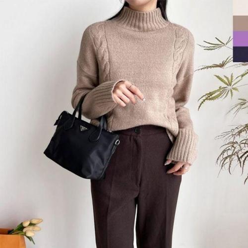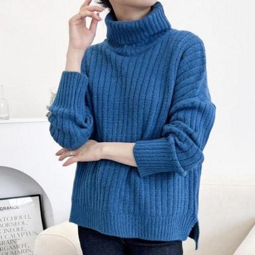 겨울 니트 폴라 스웨터 여성 골지 두꺼운 목폴라 루즈핏 WFKZJW6