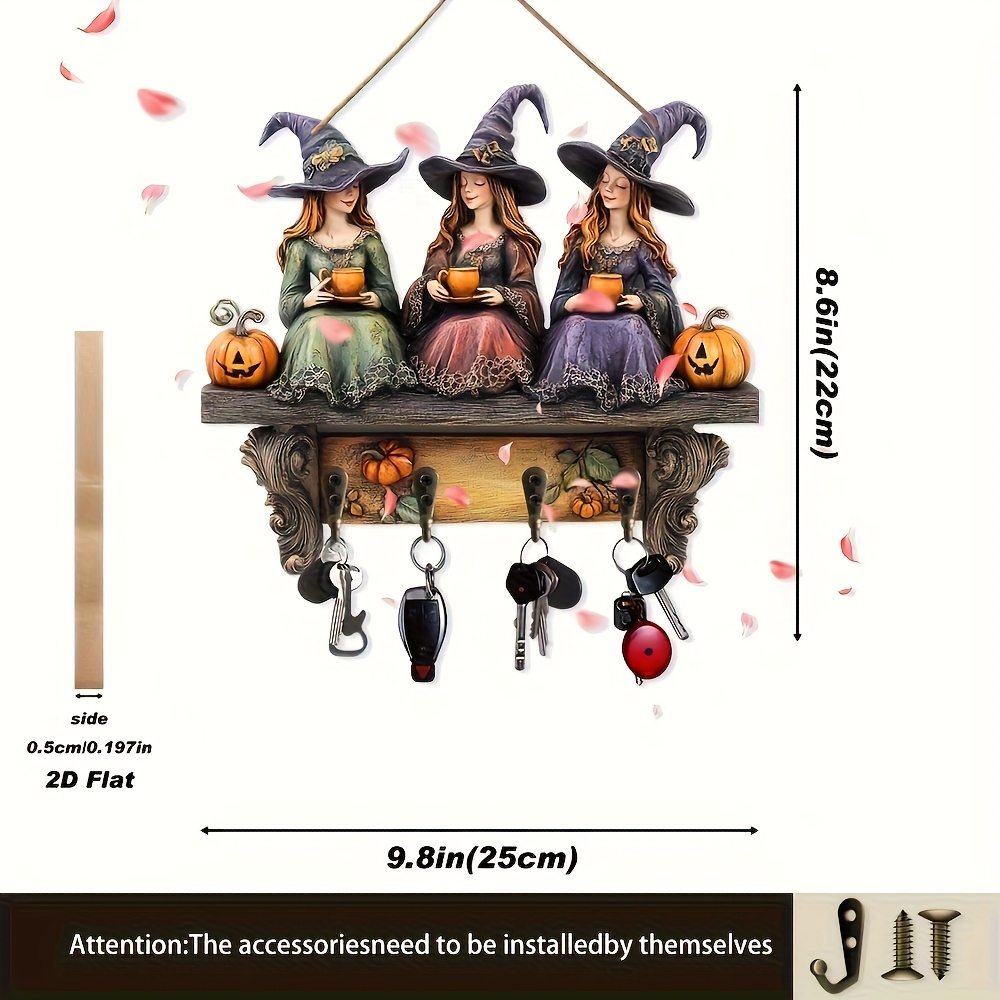 TEMU 1개 빈티지 할로윈 마녀 나무 벽 장식 - 2D 평면 재활용 목재 벽걸이, 마녀 모자 & 호박 디자인, 입구/파티 키 체인, 전기 불필요, 2D 플랫