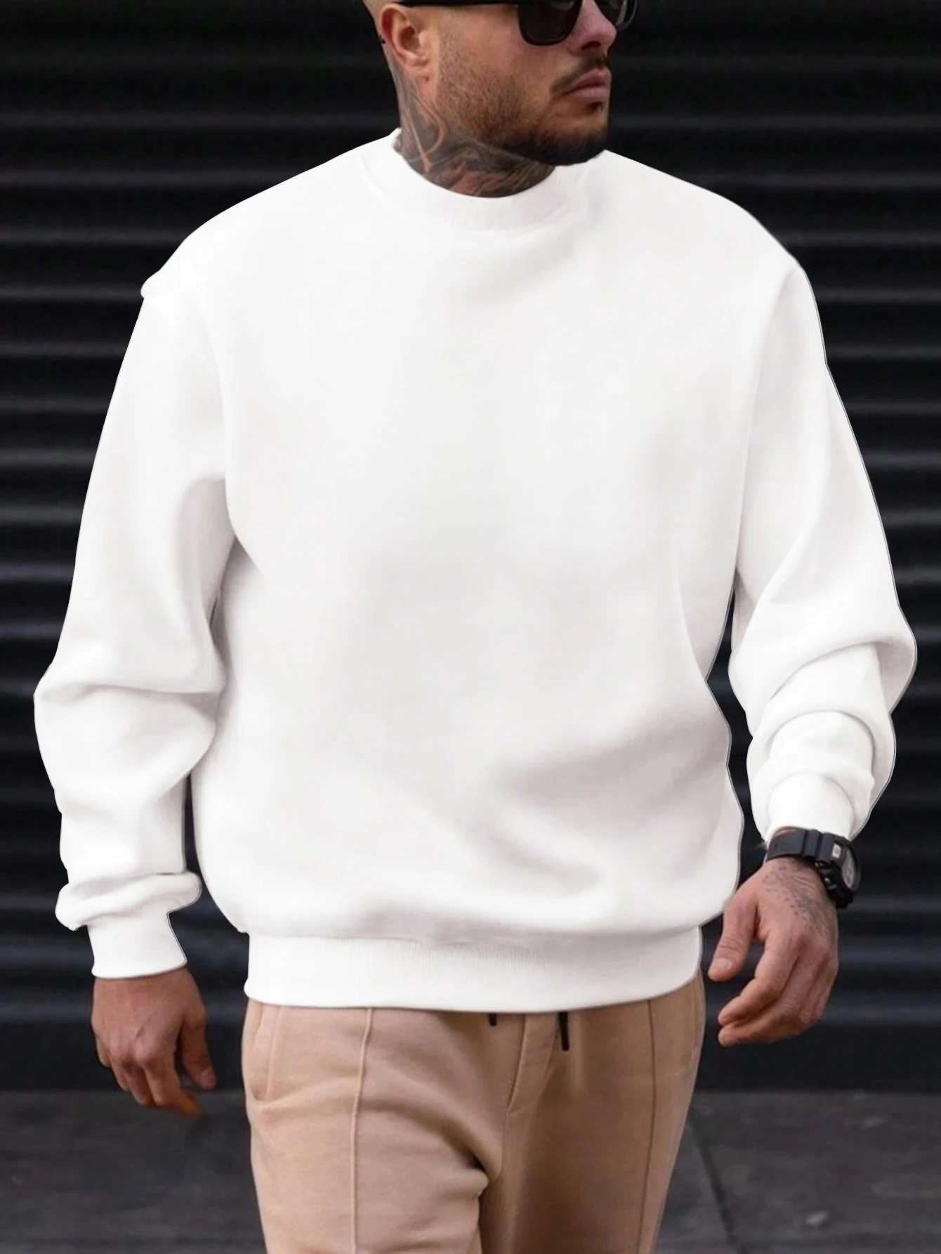 남성용 겨울 플리스 안감 스웨트셔츠 긴 소매 두꺼운 루즈핏 캐주얼 라운드넥 풀오버 셔츠 단색 스포츠웨어