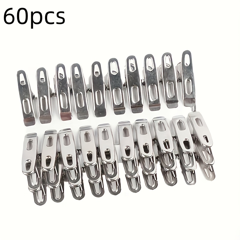 TEMU 60개 스테인리스 스틸 빨래집게 - 헤비듀티 미끄럼방지 금속 핀, 세탁, 속옷 & 양말용 | 내구성 강한 녹 방지 실내/외 사용 강력 그립 걸이 핀 | 모던 디자인 세탁 액세서리, 빨래집게
