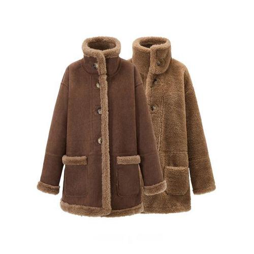 [비엔엑스]시어링 양털 배색 카라 무스탕 자켓 (BX4JK019L0)