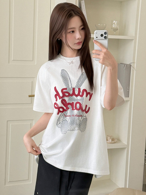 TEMU 2026 신상 패션 여성용 라운드넥 팬더 프린트 반팔 여름 캐주얼 티셔츠