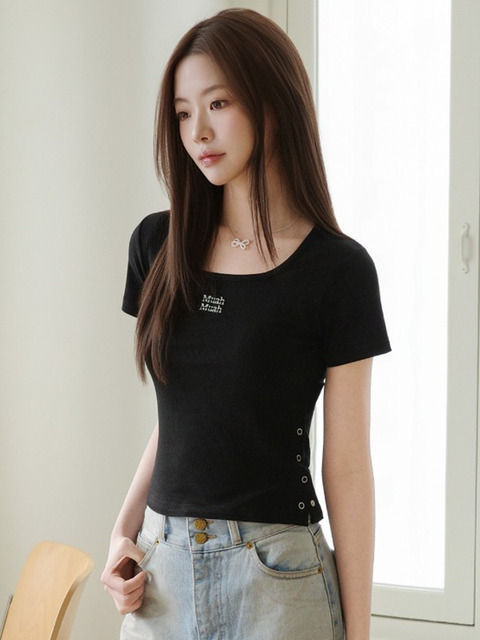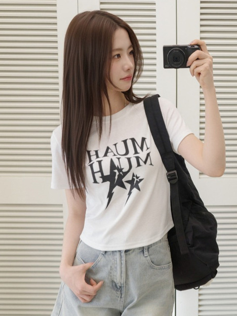 여자 여름 시원한 소재 스트라이프 단가라 반팔티 여성 티셔츠 크롭티 여자반팔면티