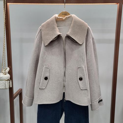 [무자크]핸드메이드 캐시미어 숏 자켓 여성 라운드넥 A라인 겨울 아우터 MP8JK06