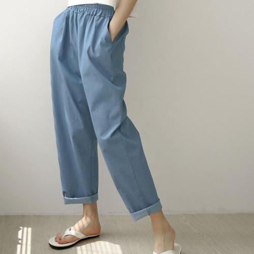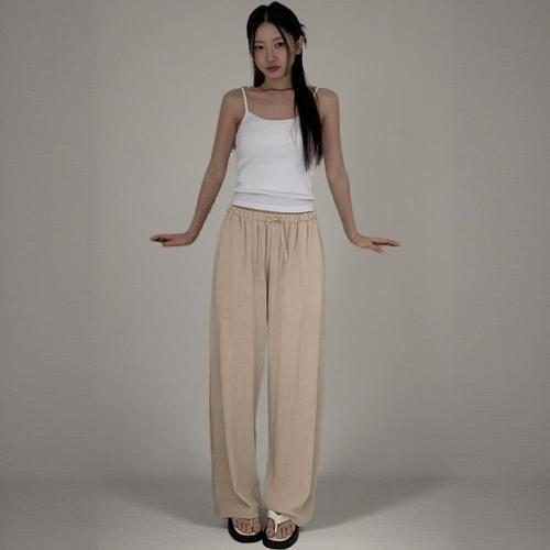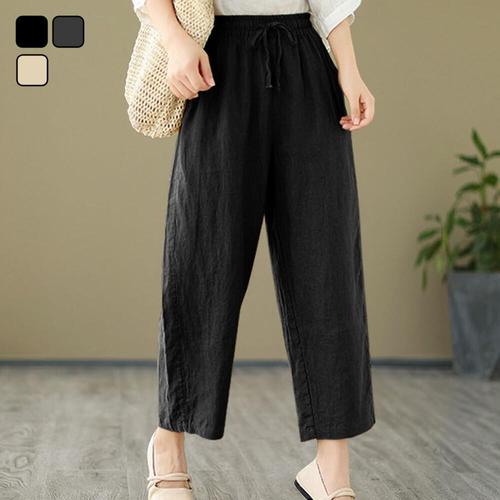 [신상오픈런]여성 여름 린넨 무지 컬러 밴딩 와이드 바지