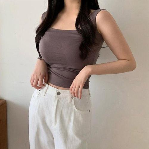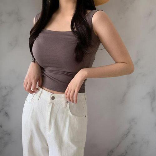 [옷자락]여자 스퀘어넥 셔링 크롭 슬림핏 무지 여름 나시