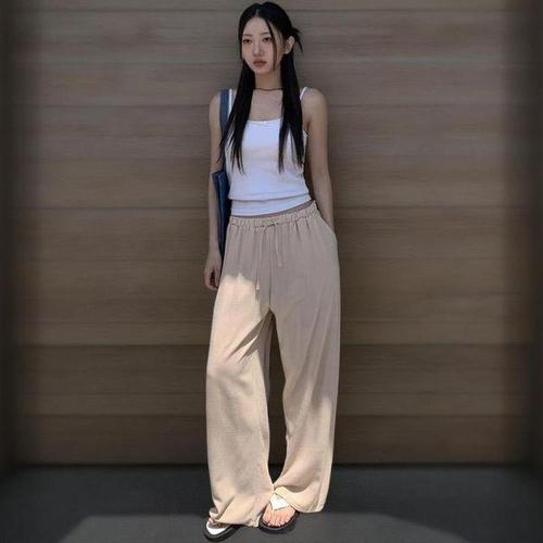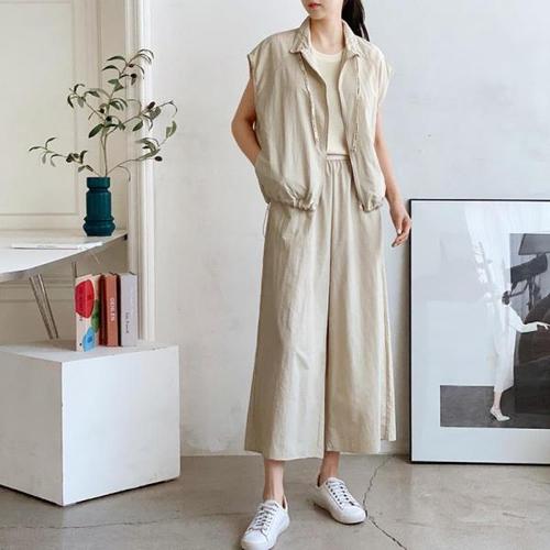 [다잇템]여자 여름 무지 밴딩 셋업 와이드핏 코튼 팬츠