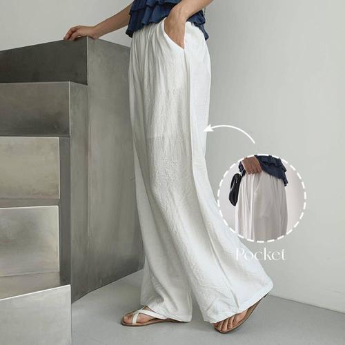 [옷자락]여성 썸머 무지컬러 린넨 밴딩 와이드 롱 팬츠
