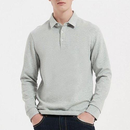 남성용 두툼한 코튼 카라 긴팔 티셔츠 골프 캐주얼 무지 셔츠 WFLN0JN