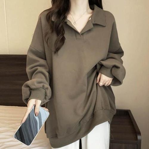 [오너클랜]인기상품 여성 루즈핏 무지 카라 맨투맨 1P 봄가을 긴팔 티셔츠 [WE3695A_250919]