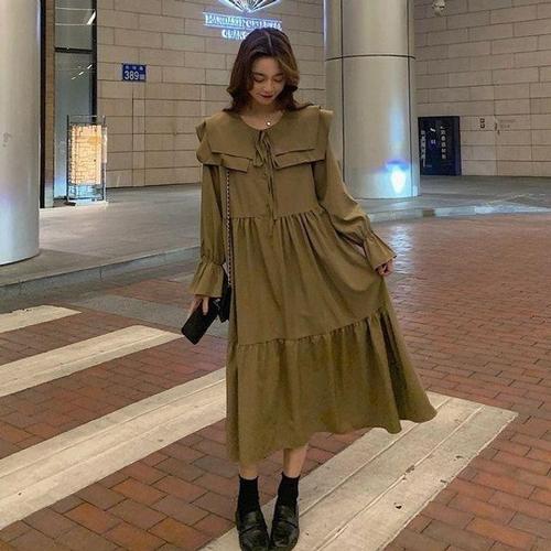 퍼프소매 린넨 롱 랩 빅카라 무지 938 원피 WFLMV34