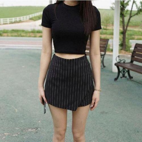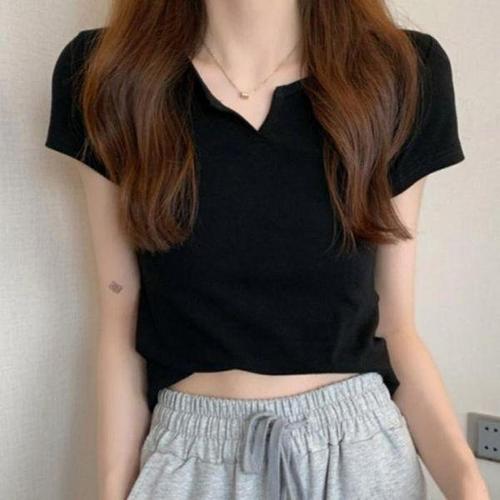 [셀러허브_여성트랜드패션]여성 크롭 무지 반팔티 여름 블랙 라운드넥 슬림핏