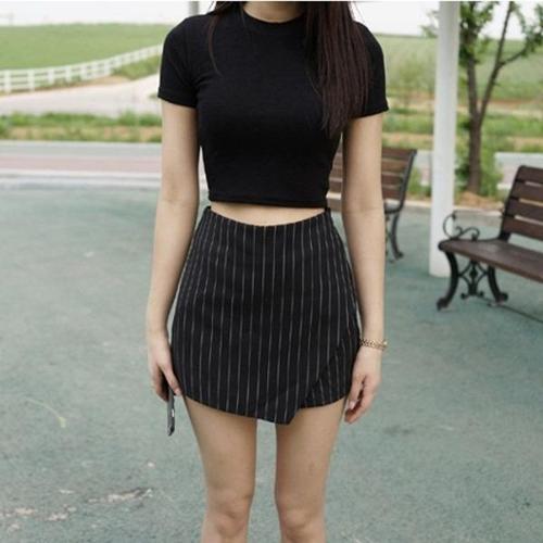 [엄지척]여자 여름 블랙 라운드넥 슬림핏 크롭 무지 반팔티_19599639_667501