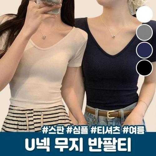 여성 KB70GH85 6컬러 딥 U넥 무지 심플 캡소매 크롭 반팔티셔츠