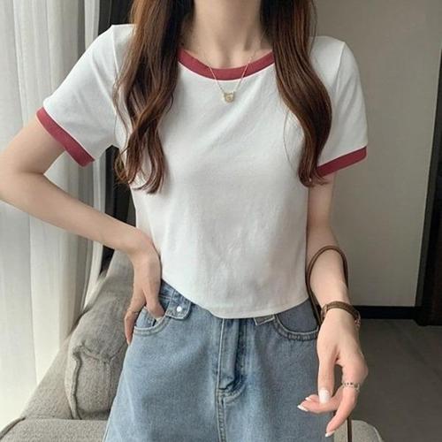 [엄지척]여성 크롭 스타일 배색 라인 포인트 무지 티셔츠_19612874_667501