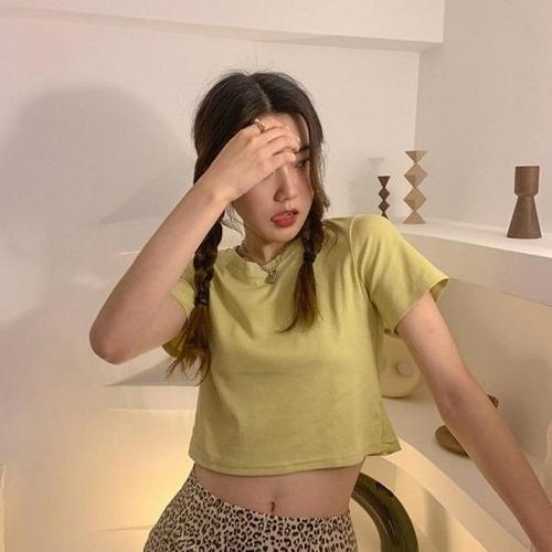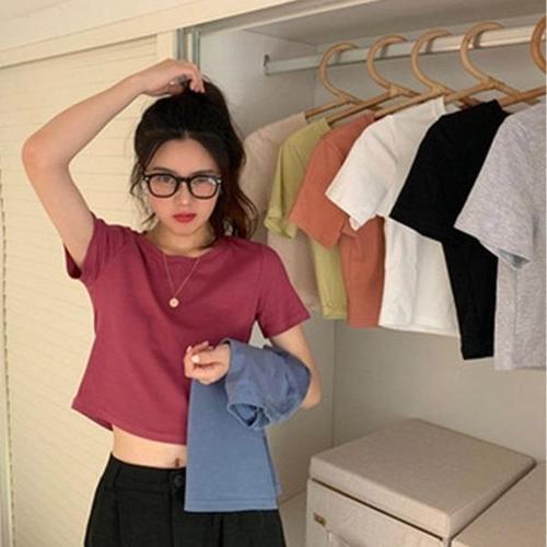 [하프클럽] 숏 짧은 여름 기본 단색 컬러 무지 크롭티